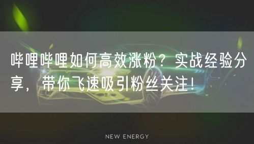 通过以上实战经验分享,相信你在哔哩哔哩上高效涨粉已经有了更清晰的思路。记住,持续创作优质内容、加强粉丝互动、多渠道推广以及数据分析与优化是涨粉的关键。希望你在哔哩哔哩上能够飞速吸引更多粉丝关注,提升影响力。
